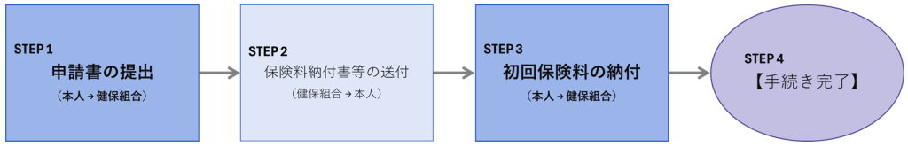 ・事業主より健保組合に資格喪失(退職)の届出がされましたら、任意継続手続きを開始し、ご自宅に保険料納付書などの書類一式をレターパックプラスにてお送りします。