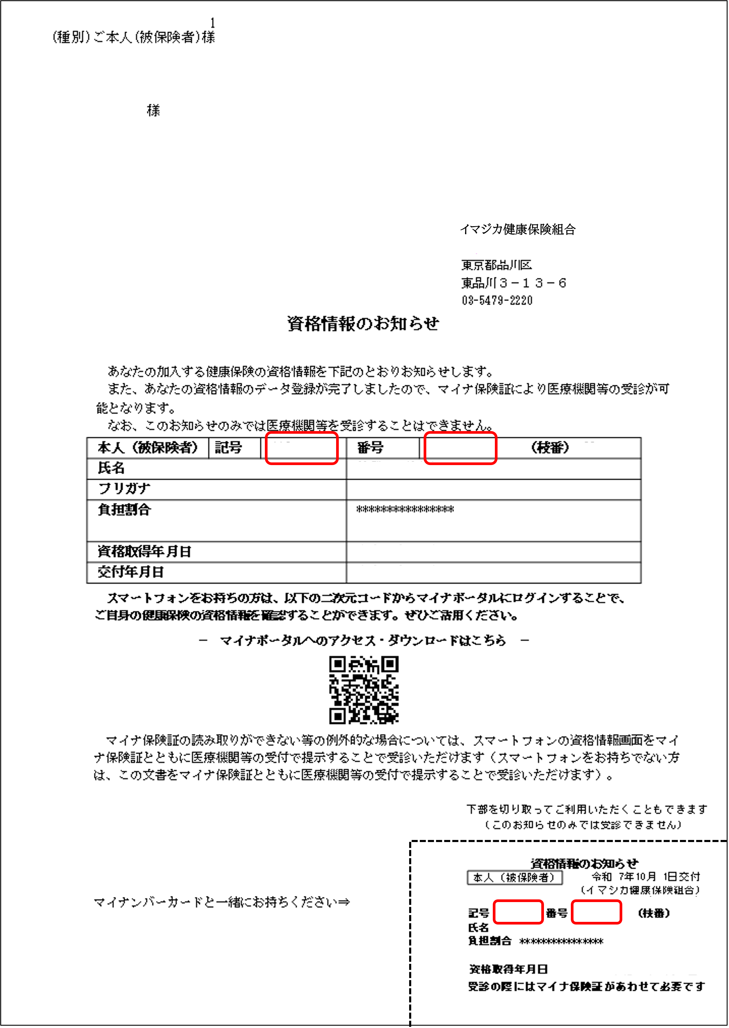 資格情報のお知らせは、当組合に加入している方全員(被保険者・被扶養者)に交付しています