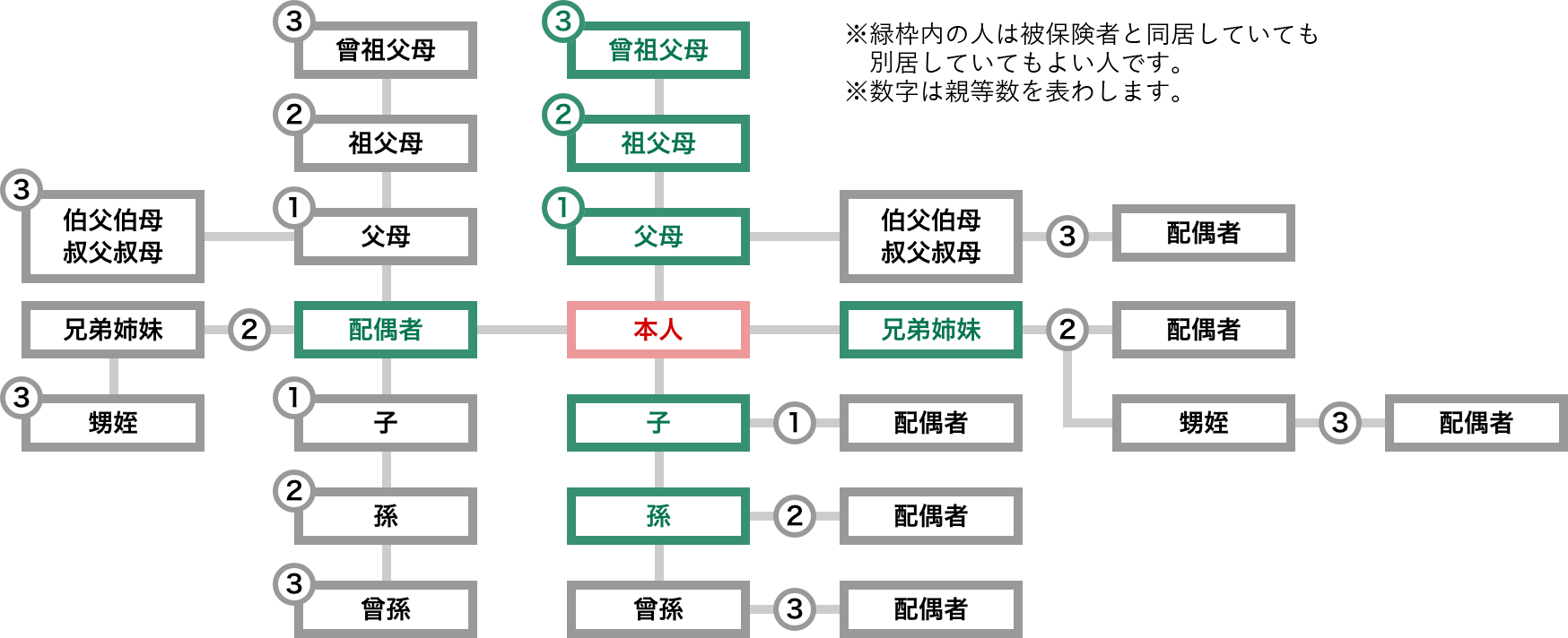 ★同居・別居どちらでもよい人・・・配偶者(内縁を含む)・子・孫・兄姉弟妹・父母等の直系尊属