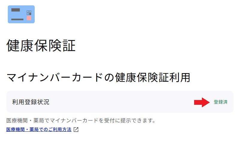 電子証明書更新後のマイナ保険証を医療機関等で使用する前に、必ずマイナポータルで健康保険証の利用登録状況が「登録済み」である事を確認してください。